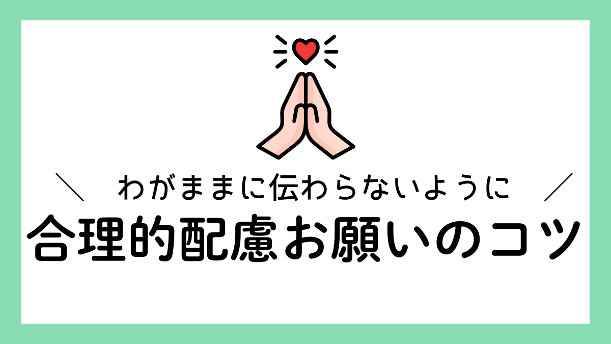 この記事では、合理的配慮とわがままの違いと、誤解されないための伝え方をお伝えします。
